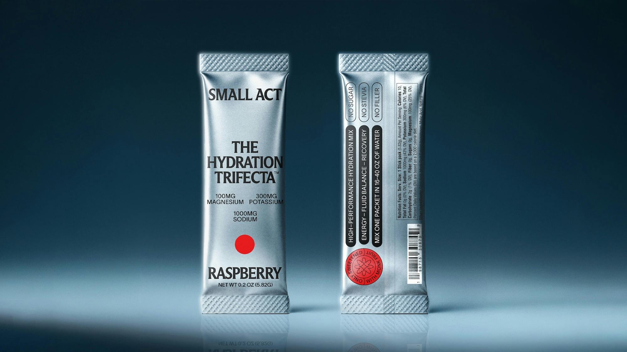 Small Act product A sleek, minimalist design showcasing a hydration product with electrolytes, emphasizing cle... | Image | - | |